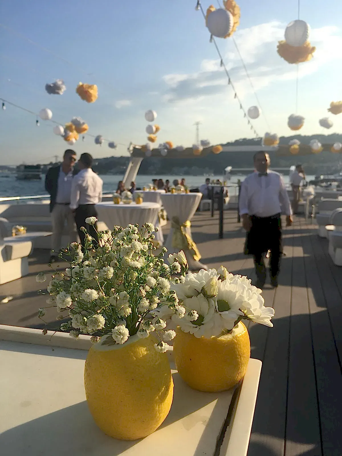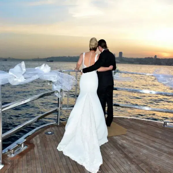 As yacht-owners ourselves, we are intimately familiar with the needs of guests, logistics and practicalities. After years of working with many different yachts for weddings in Istanbul, we have since narrowed it down to a select-few luxury charter yachts that we feel can offer a reliable and professional service expected for a wedding. These carefully-selected and well-cared for luxury boats offer comfort, modern facilities and an attentive service for our valued guests. Additionally for your peace of mind, we can facilitate a viewing of your selected wedding boat prior to booking for those who wish. So you can rest assured that by booking with us, you will be getting one of the best possible boats in the city for a smooth event as well as one of the most beautiful wedding venues in Turkey.